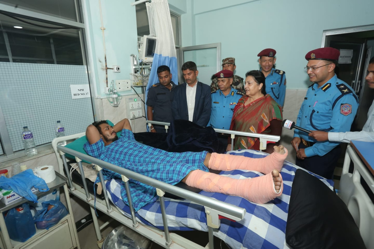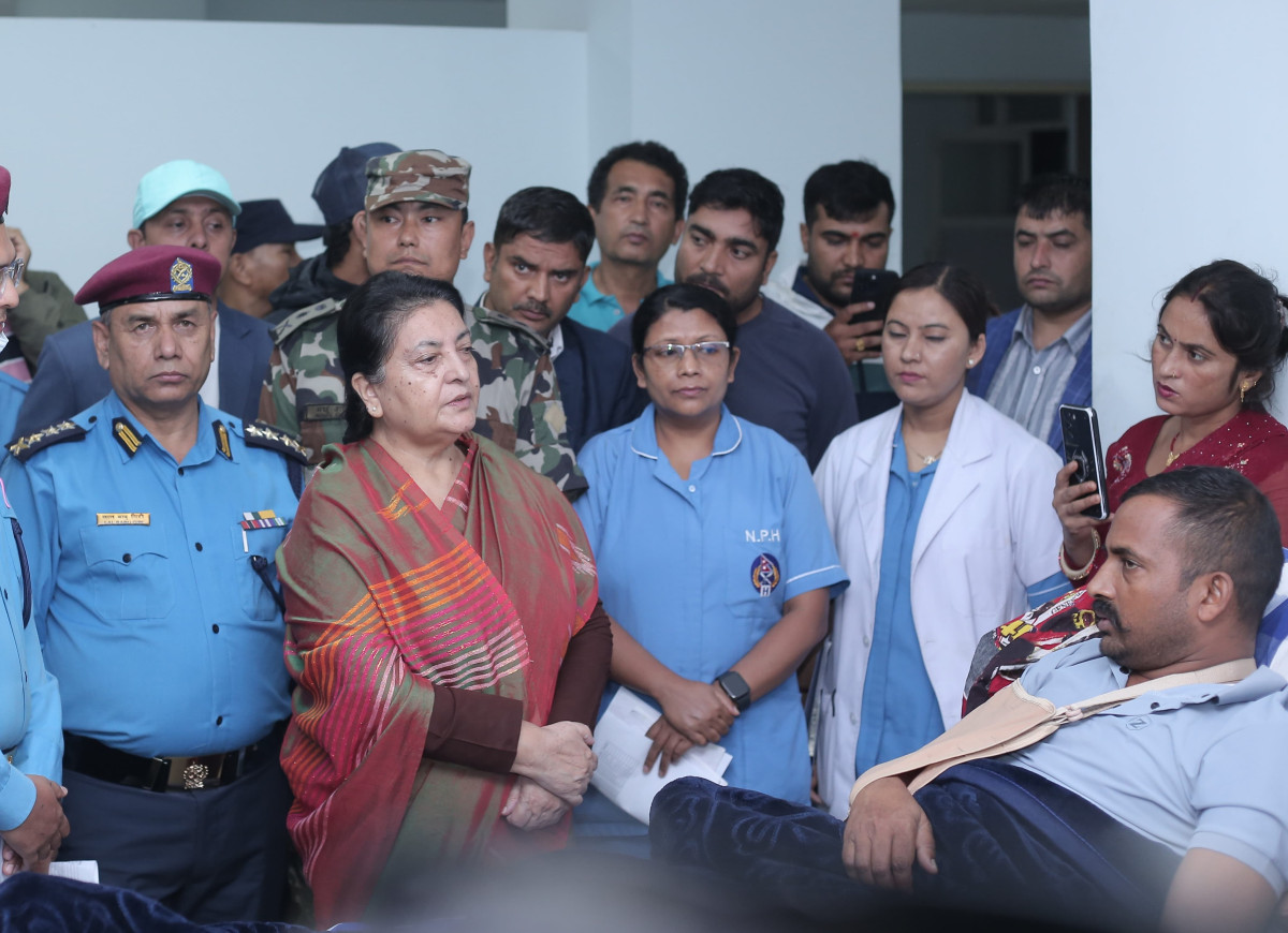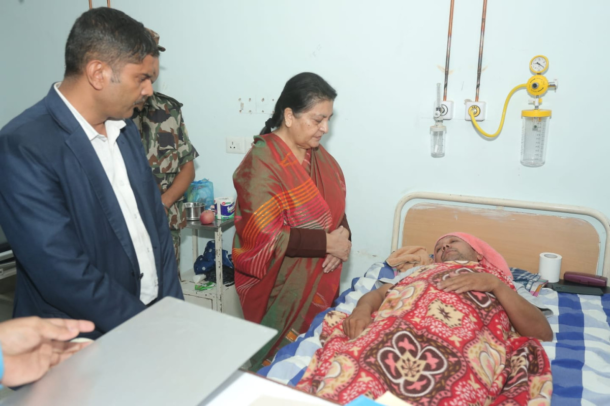 काठमाडौं । पूर्वराष्ट्रपति विद्यादेवी भण्डारी घाइतेहरूलाई भेट्न अस्पताल पुगेकी छन् ।