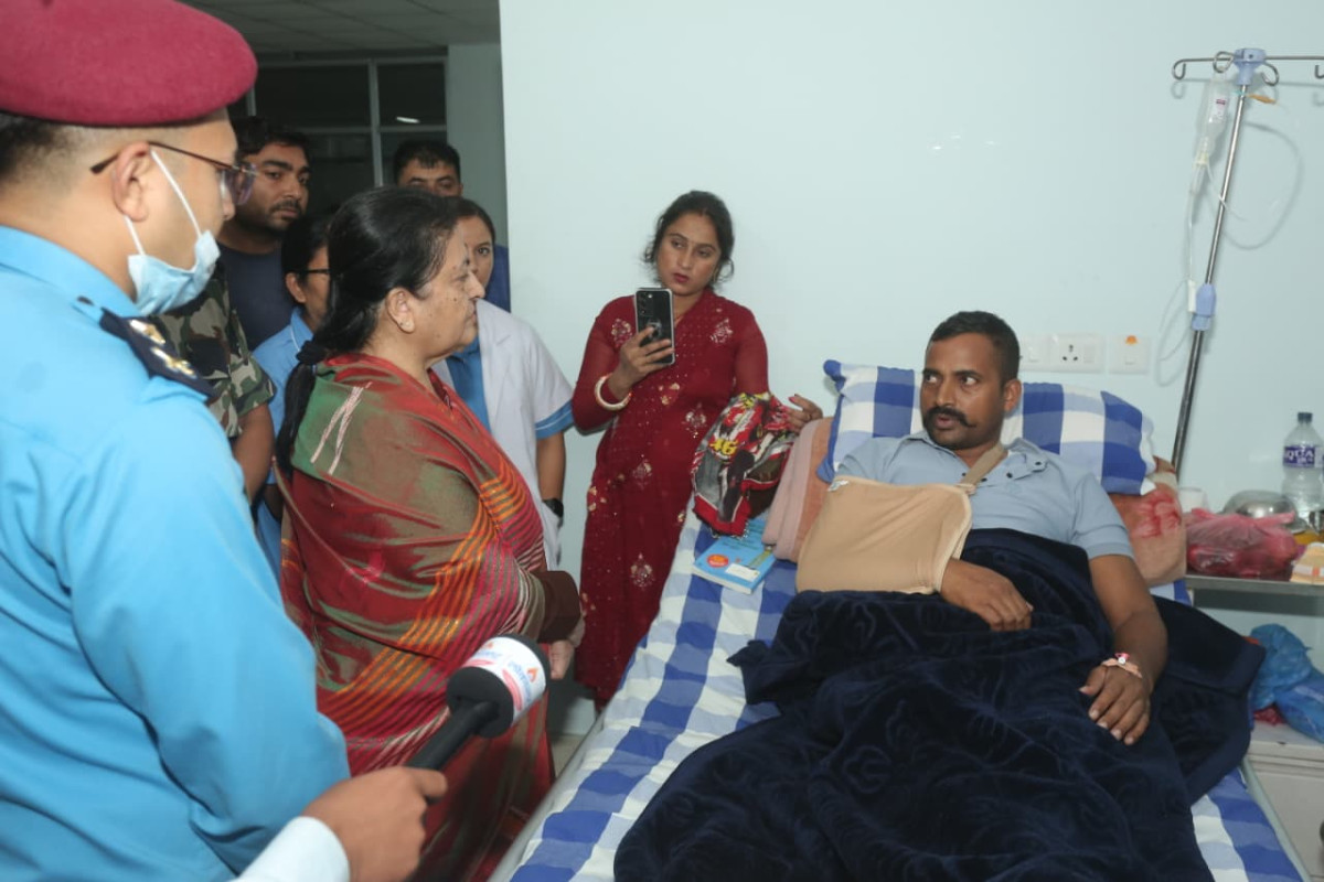 गत भदौ २३ र २४ गते जेनजी पुस्ताका युवाहरूले गरेको आन्दोलनमा घाइते भएकाहरूलाई भेट्न शुक्रबार पूर्वराष्ट्रपति भण्डारी नेपाल प्रहरी अस्पताल पुगेकी हुन् ।
