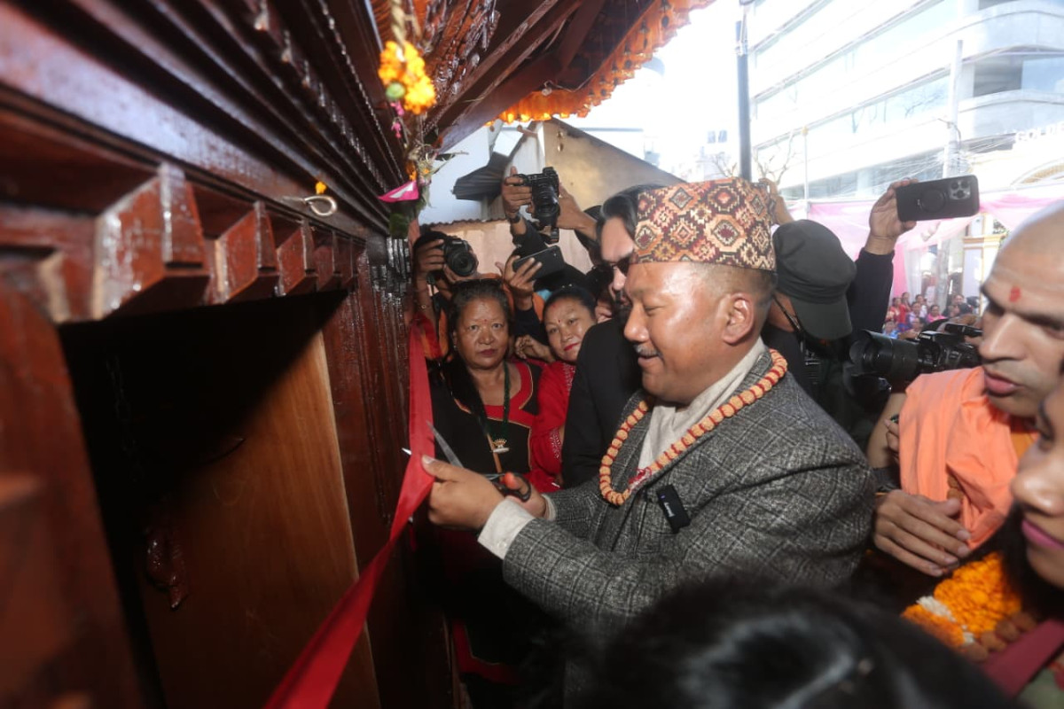 काठमाडौं । छैटौं शताब्दीको ऐतिहासिक व्रह्मा मन्दिरको पुनः निर्माण सम्पन्न भइ समुद्घाटन गरिएको छ । शुक्रवार मध्यान्ह काठमाडौं महानगरपालिकाका प्रमुख बालेन्द्र साह, उपप्रमुख सुनिता डंगोल, डा।स्वामी केशवानन्द गिरी लगायतको उपस्थितिमा मन्दिरको समुद्घाटन गरिएको हो ।