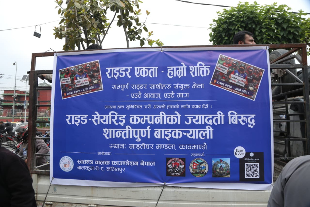काठमाडौं । राइड सेयरिङ चालकहरूले विभिन्न माग राख्दै सोमबार काठमाडौंमा प्रदर्शन गरेका छन्। उनीहरूले माइतीघरबाट प्रदर्शन सुरु गरेका हुन्।