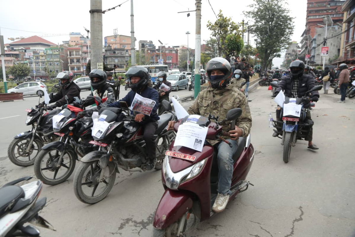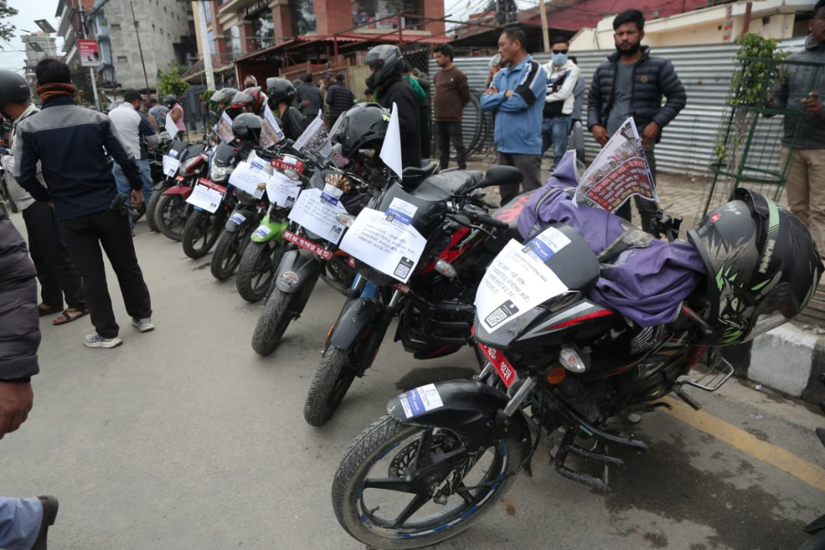 राइड सेयरिङ चालकको र्याली त्रिपुरेश्वर, कमलपोखरी, बानेश्वर हुँदै तीनकुने पुगेर कोणसभामा परिणत भएको छ।