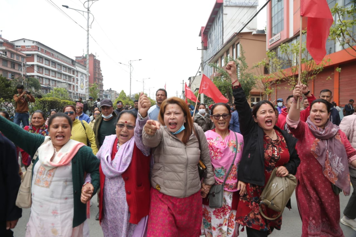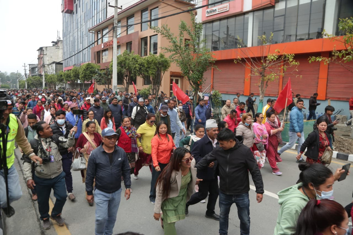काठमाडौंको माइतीघर-बबरमहल क्षेत्रमा केहीबेर अघिदेखि एमालेका कार्यकर्ताहरू प्रदर्शनमा उत्रिएका हुन् । एमालेका जनवर्गीय संगठनहरूले देशैभर जिल्ला प्रशासन कार्यालयमा विरोध पत्र बुझाउँदैछन् ।